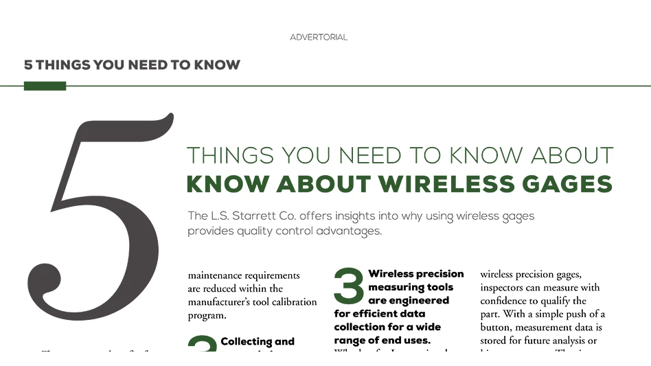 The L.S. Starrett Co. offers insights into why using wireless gages provides quality control advantages.