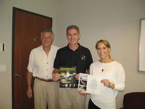 Mission Specialist Col. Michael Good returned the cover to the AMD staff at their Richfield, OH, office on Tuesday, June 30. Good presented the staff with the cover reprint that flew aboard Atlantis, as well as a certificate of authenticity from NASA.