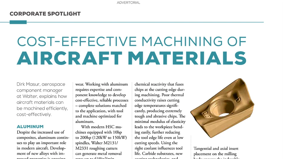 Dirk Masur, aerospace component manager at Walter, explains how aircraft materials can be machined efficiently, cost-effectively.