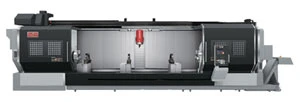 The HCN 8800-II's 11.5-ton base and column are extremely rigid in construction and were designed specifically to accommodate these high levels of torque and part weight. The machine's travels are 55.12" (1,400mm) on the X-axis (3.94" longer than the previous model); 47.24" (1,200mm) on the Y (3.94" longer); and 52.17" (1,325mm) on the Z (12.8" longer).