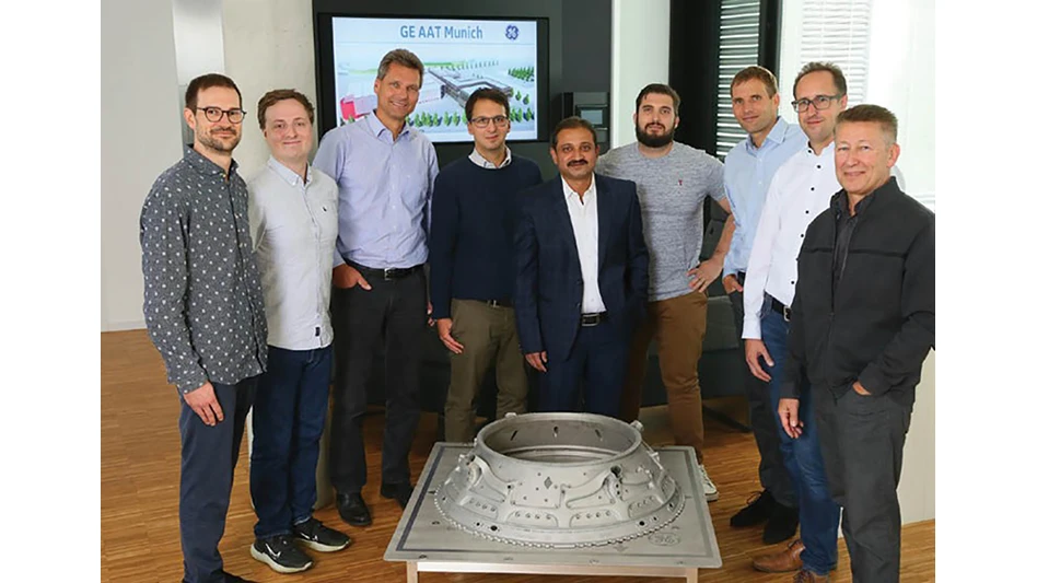 “We wanted to reduce the weight of the part by 25% but also improve the pressure losses of the secondary air flow as well as a strong reduction in part count to improve maintenance,” says Dr. Günter Wilfert, GE AAT Munich’s technology and operations manager. “The team can be proud of the results. With the final print of the full casing, they proved the values. Those targets were achieved and surpassed. We reduced the weight by ~30% in the end. The team also reduced the manufacturing lead time from nine months to two-and-a-half months, a near 75% reduction. More than 150 separate parts making up a conventional turbine center frame casing have been consolidated into one single-piece design.”