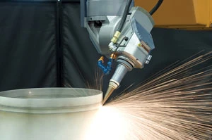 The Laserdyne 795 is equipped with Convergent Lasers CL50k Nd:YAG laser allowing for processing of complex parts along the full travel of the Z-axis at compound angles as shallow as 10° to the surface. This is important in processing today's turbine engine components where designers require increasingly wider flexibility in hole placement and accuracy to achieve higher performing, fuel efficient engines with less emissions.