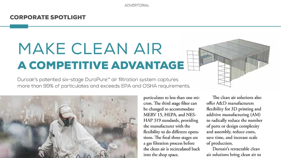 Duroair’s patented six-stage DuroPure™ air filtration system captures more than 99% of particulates and exceeds EPA and OSHA requirements.