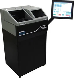 Microlution's CNC micro-milling machine is available with a 36-pocket automatic tool changer and interpreting standard Gcode. The CNC micro-milling machine delivers 2µm positioning accuracy, 50µm resolution, and 200µm repeatability, all within a 4ft2 footprint. The micro-milling machine has been utilized in a variety of industries to machine small precision parts with complex 3D free-form geometry in a wide range of materials including plastics, metals, glass and ceramics. The Microlution 363-S uses a quickchange highly repeatable mounting system for both the workpiece pallet and the spindle. The mounting system allows the workpiece and/or the spindle to be removed and replaced with micron-level repeatability. This capability allows, for example, a machining operation to be interrupted, the workpiece to be removed, inspected and replaced without the need to re-register the part. In a situation where the machine is being used for multiple applications, each application can have its own workpiece pallet. This enables multiple users to easily transition from one setup to the next without losing their part registration. Microlution's micro-milling machines are built off of precision ground granite support structures and incorporate AC linear motors and Heidenhain linear optical encoders on the X, Y and Z stages.