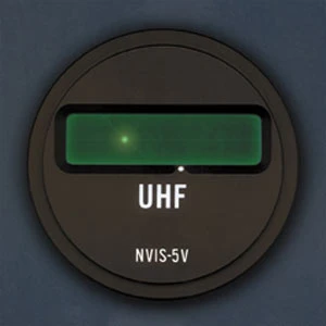 According to Harbert, "Encapsulated within the part are two sealed 5V lamp modules — one provides backlighting for UHF and the other illuminates the display that sits behind a clear window. The lamp modules are filtered in order to be compatible with nightvision goggles worn by military pilots, and the lettering at the bottom is non-illuminated."