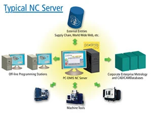 Server-based on-machine metrology software allows users to develop and test their programs on standard off-line measurement programming stations and then post process them in the appropriate format for a specific machine tool. In turn, these measurement programs are loaded onto the machine tool's controller in the form of standard G & M codes.