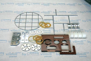 Vilmill is only 0.010" thick and has an adhesive coating on one side. The adhesive is activated by the heat generated in the machining process. Parts are bonded to the vilmill approximately 0.025" wide around the periphery and are held firmly in place during machining, allowing most parts to be machined in a single step. One method is to pull the vilmill over the edge of the machine table or a plate and the parts peel off, leaving no detectable residue.