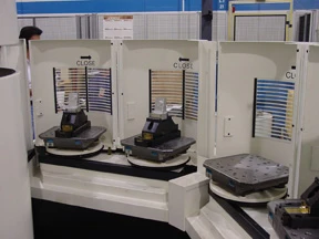 Today, 800 different parts are being run through two cells. Monolithic parts are run on one setup. Bombardier is enjoying a 91% savings on setup time with a total saving of 81% on cycle time over the old dedicated system.