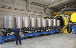 Solar's large furnaces' vacuum thermal processing provides the precise and uniform temperatures needed during the heating and cooling of the processing cycle. Solar's vacuum furnaces produce bright, clean parts while minimizing distortion and oxidation. The new furnace complements these advantages with 36ft lengths and 150,000 lb. load capabilities. The 36ft furnace has a hot zone with a 6ft working diameter, temperatures up to 2,800°, vacuum levels of 10-5 torr, and two-bar quenching capabilities to cool the large loads.