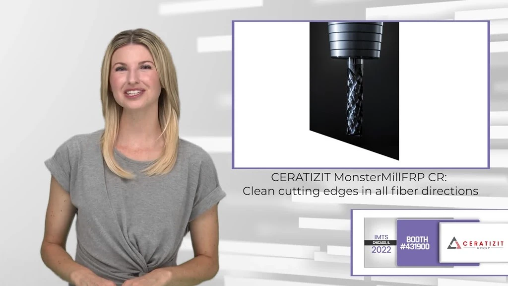 Learn more about CERATIZIT's MonsterMill FRP CR featuring unique geometry with regular left- and right-hand cuts on each cutting element. See it at IMTS booth #431900.