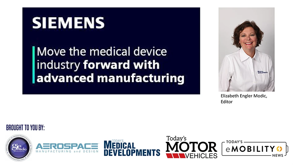 Advanced manufacturing is not a specific destination that all medical device companies need to reach. Instead, it’s a journey of incorporating tools and concepts that promote manufacturing maturity, which enables companies to successfully react to industry challenges while enabling process efficiency and flexibility. In this webinar, industry experts from the Medical Device Innovation Consortium (MDIC) and the U.S. Food and Drug Administration (FDA) discuss with Siemens Digital Industries Software how to successfully implement existing technologies that are critical to advanced manufacturing.