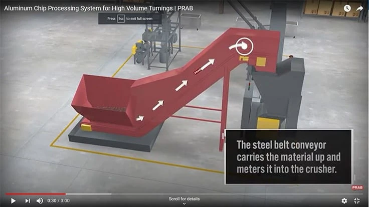Aluminum turnings are one of the most difficult types of material to process, especially in large volumes so a reliable, durable, and dependable system for this material is mandatory.