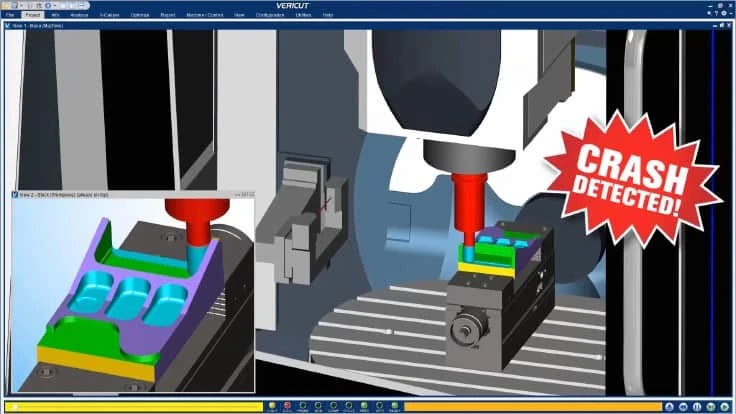 VERICUT simulates the entire CNC production and checks the NC program for collisions and errors before the real machine run.