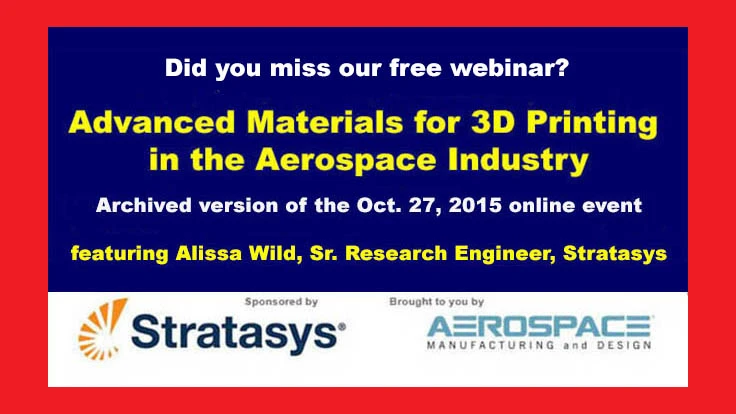 Our second webinar on 3D printing features Alissa Wild, Senior AM Research Engineer with Stratasys. She discusses advanced technical compounds developed for 3D-printing objects for aerospace applications.