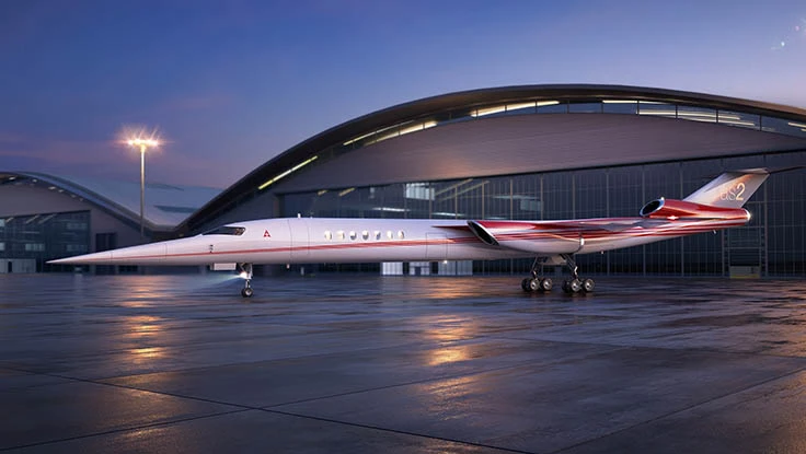 The 12-passenger AS2 is expected to fly at a maximum speed of Mach 1.4 over water, and, where permitted by regulation, at speeds approaching Mach 1.2 without a sonic boom reaching the ground. Thanks to its unique supersonic natural laminar flow wing, the aircraft is expected to achieve long range (Los Angeles to Paris) and reduce trans-Atlantic trips by as much as three hours, enabling business leaders to fly roundtrip between New York and London in a day.