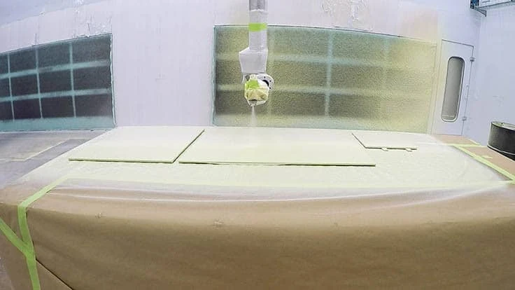 Minteq engaged Aerobotix for the company’s expertise in robotically spraying parts and test panels within extremely tight tolerances for uniformity and thickness of coverage. Aerobotix also has significant prior experience with major primes using the FIREX product.