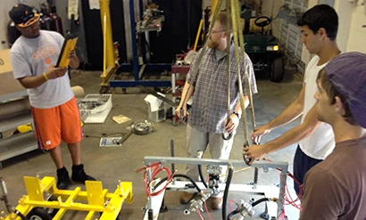 Mechanical engineering researchers Gregory Mocko, Mark Connelly, Curtis Duckett, Brock Fitschen, Shane Reid, Samuel Smith III, Chris West and Austin Wise completed the mobile drill press project.