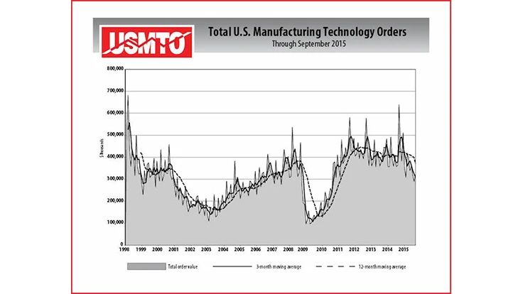 U.S. manufacturing technology orders are also reported on a regional basis for five geographic breakdowns of the United States.