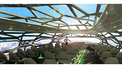 The company’s visionaries see a future in which an aircraft’s bionic structure mimics bird bone, which is optimised to provide strength where needed. The idea would allow an ‘intelligent cabin wall membrane’ to be deployed that can become transparent to provide passengers with open panoramic views.