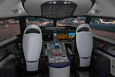 The flight-deck windows are aerodynamically contoured to enhance the 787’s fuel efficiency. The structurally-loaded windshields will carry aircraft pressurization loads, transferring the structural load back to the airframe, according to Cancilla.