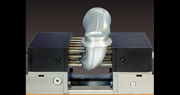 Menomonee Falls, Wisconsin – A part-specific outline is molded within seconds with this new flexible pin-clamping system, making your piece ready for machining, inspection, or numerous other applications. Each pin is locked hydraulically using separate, internal KOSTYRKA clamping sleeves with no axial or radial pin movement while locking. There is complete enclosure with no chip penetration and vibrations are reduced.