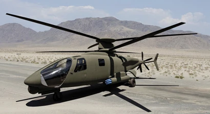 The aircraft uses a coaxial, counterrotating rotor system and pusher propeller for higher performance. AVX is pursuing a similar concept.