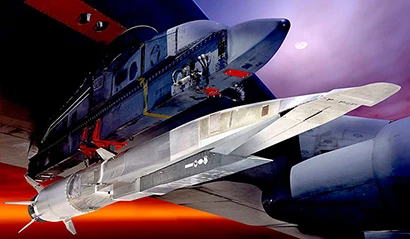 The Waverider was designed to reach speeds of Mach 6 or above, six times the speed of sound and fast enough to zoom from New York to London in less than an hour. The military has its eye on using the Waverider program to develop missiles with non-nuclear explosives that could strike anywhere in the world within an hour, analysts said.