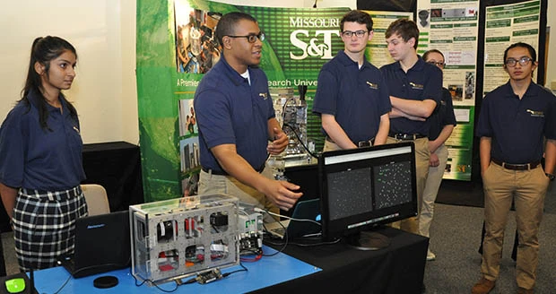 Students from Missouri University of Science and Technology present their first-place winning satellite program at the Air Force Research Laboratory Space Vehicles Directorate’s University Nanosatellite Program student competition, Jan. 17-19, 2015. (Courtesy photo)