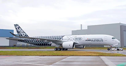 On Thursday, Jan. 2, 2014, Airbus rolled-out its third A350 XWB flight-test aircraft, MSN2, from the paint shop in Toulouse, France, marking another milestone on the path to entry-into-service in Q4 2014. As well as featuring a distinctive “Carbon” signature livery to reflect its primary construction from advanced materials, this aircraft is also the first of two A350 flight test aircraft to be equipped with a full passenger cabin interior.