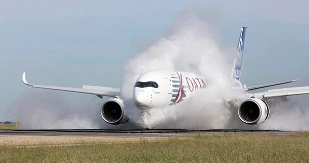 Toulouse, France - Airbus has successfully performed certification testing to demonstrate the A350 XWB’s ability to operate on wet runways. During these tests at Istres, France, the flight-test aircraft, MSN004, travelled through troughs containing at least 22mm of water depth, at a variety of speeds, starting at 60kts, and successively increasing to around 140kts.