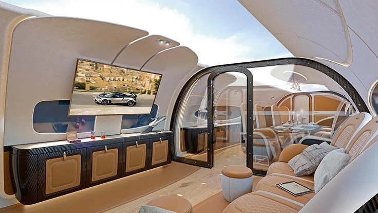 If the budget only allows for an Airbus Corporate Jets’ ACJ319neo, at least it can have a custom interior designed by Italian hypercar manufacturer Pagani Automobili.