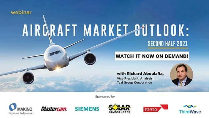 Were you unable to attend our free webinar, Aircraft Market Outlook: Second Half 2021? Now you can watch it on demand. Richard Aboulafia, Vice President of Analysis at Teal Group, examines the present and future of aerospace markets as the world begins to emerge from the pandemic.