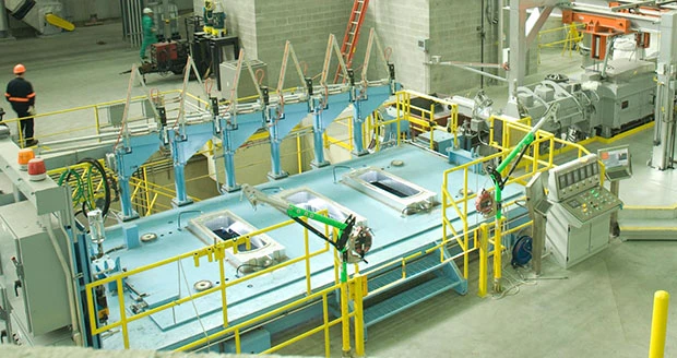 Alcoa’s Lafayette cast house, located next to its extrusion plant, can produce more than 20,000 metric tons (44 million pounds) of aluminum-lithium annually – making it the largest facility of its kind in the world. Alcoa’s materials scientists invented a majority of the alloys produced at the facility as well as the casting equipment and processing technology. The company offers the most complete portfolio of aluminum-lithium products, including extruded, forged, and rolled parts. It has the number one market position in aluminum-lithium extrusions and a significant position on the Airbus A380, Airbus A350, Boeing 787, and Gulfstream G650. Alcoa produces single-piece wing skins, including for wide-body airplanes, fuselage skins, wing stringers, floor beams, seat tracks, and other components. The company also is developing the first ever aluminum-lithium forging for a front fan blade for Pratt & Whitney’s PurePower engines.
