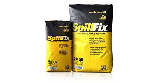 SpillFix is made from a bi-product of the coconut (coir), which is an organic, renewable resource that is non-carcinogenic, contains no chemicals, and is silica free. When compared to clay-based absorbents, SpillFix clients need 80% less product to clean up spills in less than half the time. SpillFix is dustfree, non-abrasive, and there is no after residue often left with heavy sticky clay or absorbent pads. SpillFix’s absorbency allows it to be reused to clean up more than one spill, adding to cost savings.