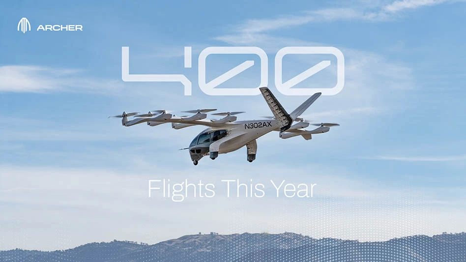San Jose, California-based Archer Aviation has completed 402 test flights so far this year, surpassing the 400 test-flight goal it set for 2024 approximately four months ahead of schedule.