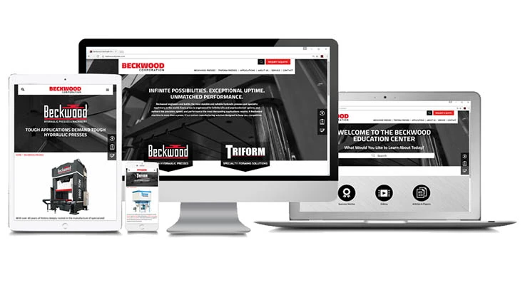St. Louis, Missouri– Beckwood Press Co., a manufacturer of custom hydraulic presses and automation systems and the Triform line of specialty forming equipment, has launched a new website. Designed with manufacturers in mind, the new beckwoodpress.com features a simplified menu structure, streamlined paths of discovery, and a responsive layout for all platforms. The site also offers in-depth information about forming applications, press frame styles, and maintenance strategies.