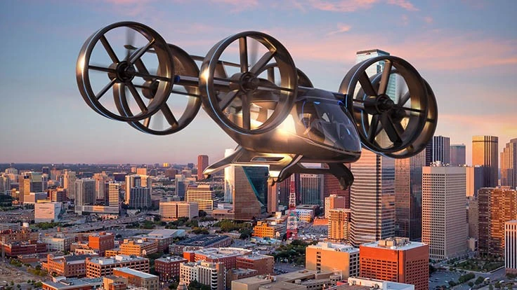 Bell Helicopter, a Textron Inc. company, revealed its full-scale vertical-takeoff-and-landing (VTOL) air taxi vehicle during the CES 2019 technology trade show in Las Vegas, Nevada. The air taxi, named Bell Nexus, is powered by a hybrid-electric propulsion system and features six tilting ducted fans for lift.