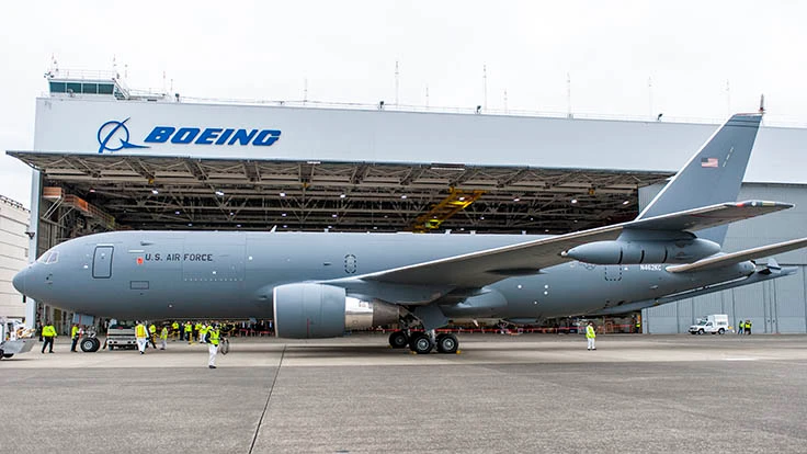 The KC-46A is a multirole tanker Boeing is building for the U.S. Air Force that can refuel all allied and coalition military aircraft compatible with international aerial refueling procedures and can carry passengers, cargo, and patients. Overall, Boeing plans to build 179 KC-46 aircraft for the U.S. Air Force.
