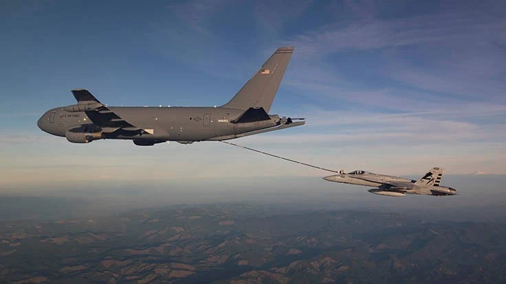 The KC-46A multirole tanker can refuel all allied and coalition military aircraft compatible with international aerial refueling procedures and can carry passengers, cargo, and patients.