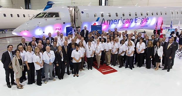 The delivery ceremony at Bombardier’s Mirabel, Québec, facility was attended by senior executives and employees of American Airlines, PSA Airlines, Bombardier, and major suppliers to the CRJ Series regional jet program.