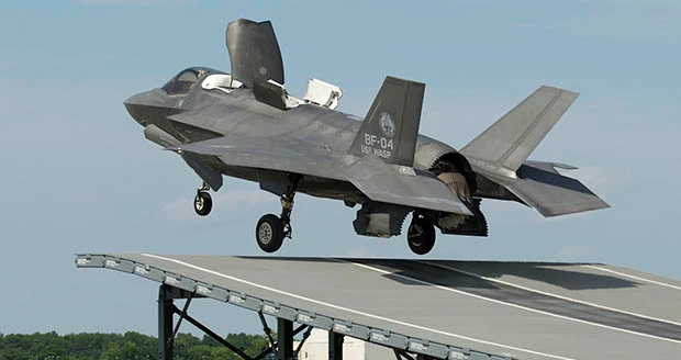 Washington – The launch took place at Naval Air Station Patuxent River, Maryland, on June 19, 2015, from a land based ski jump and marks the start of an initial testing phase expected to last two weeks. The trials demonstrate the aircraft’s ability to take off safely and effectively from a ski-jump ramp similar to that which will be used on the UK’s new aircraft carrier. Ski-jump ramps provide the aircraft with an upward flight path meaning the aircraft can take off from the available distance with a greater payload, which means more weapons.