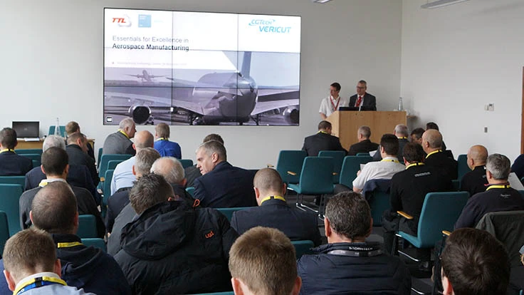 Irvine, California – Organized by CGTech, TTL, and Siemens PLM, the Essentials for Excellence in Aerospace Manufacturing conference was held recently at the Manufacturing Technology Centre (MTC), Ansty, Coventry, U.K. More than 50 visitors attended from the UK’s leading aero frame, engine and component manufacturers, as well as high-tech sectors that share similar challenges, such as motorsport, power generation and medical engineering.