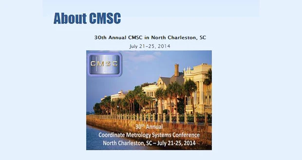 North Charleston, S.C. –The Coordinate Metrology Society (CMS) has selected a comprehensive slate of 24 technical presentations for the 2014 Coordinate Metrology Systems Conference (CMSC), July 21-25, 2014, at the Embassy Suites, North Charleston, S.C.