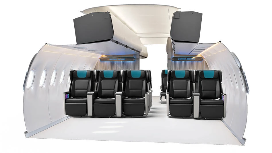 Diehl Aviation and HAECO Cabin Solutions showcased a new premium cabin concept for single-aisle aircraft at the Aircraft Interiors Expo (AIX 2023) to improve passenger comfort and grow airline yields. This new cabin concept allows an additional seat per row in the same space as a traditional recliner premium cabin and improves passenger comfort and privacy.
