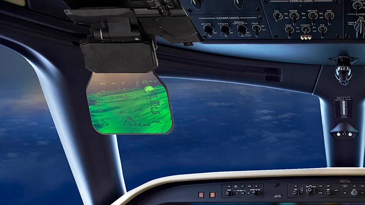 E2VS consists of a compact Head-Up Display (HUD), incorporating Rockwell Collins’ new Head-up Guidance System (HGS) and its multi-spectral EVS-3000 enhanced vision system. The HUD’s compact size and discrete profile allowed it to be incorporated into the Legacy cockpit and fully integrate with Rockwell Collins’ Pro Line Fusion avionics suite.