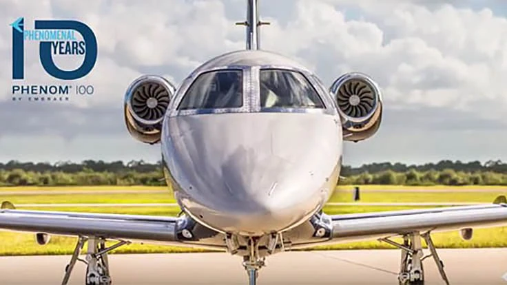 Embraer Executive Jets is celebrating the 10th anniversary of the first flight of its Phenom 100 entry level business jet. A mockup of the aircraft was first displayed in 2006 at the Experimental Aviation Association’s annual airshow in Oshkosh, Wisconsin.