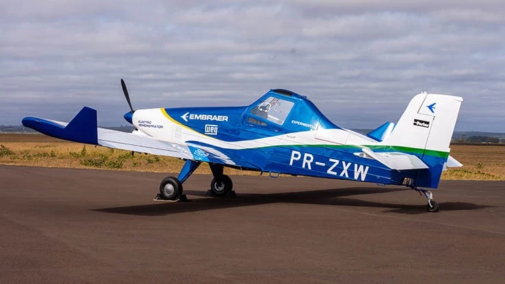 The aircraft's electric motor and controller are being manufactured by WEG at the company's headquarters in Jaraguá do Sul, Santa Catarina, Brazil, as part of the scientific and technological cooperation agreement for jointly development of electrification technologies.