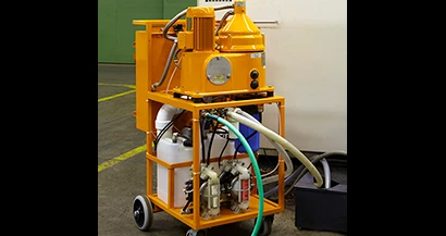 The compact design of the Eriez Hydroflow Portable Tramp Oil Separator is an ideal choice for small metalworking plants. The high-speed centrifuge built into the portable separator delivers clean fluid with tramp oil levels below 0.5% and metallic solids in the 2µ to 5µ range.
