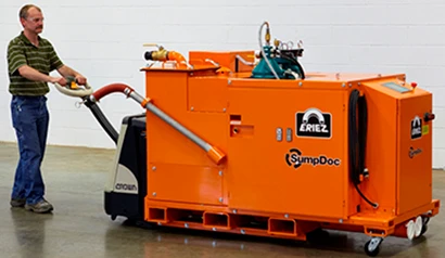 Eriez Hydroflow introduces SumpDoc, a portable inline fluid reclamation machine that provides complete coolant restoration and rejuvenation treatment of the metalworking fluids in the machine tool sump with minimal operator interface. There is no interruption in the production cycle or need to transport fluids. The portable SumpDoc can be wheeled next to a machine tool, parts washer, or rinse tank to provide full-service fluid reclamation in a simple three step process.