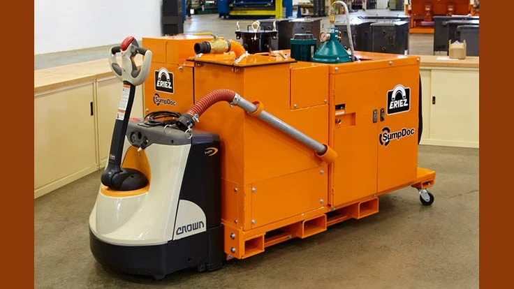 Erie, Pennsylvania – The Eriez HydroFlow SumpDoc is an all-in-one portable fluid recycling system that completely filters and rejuvenates metalworking fluids in a machine tool sump without interrupting production. By eliminating downtime and saving costs through re-use of fluids, SumpDoc provides a more economical alternative to a central fluid recycling system or batch processing.